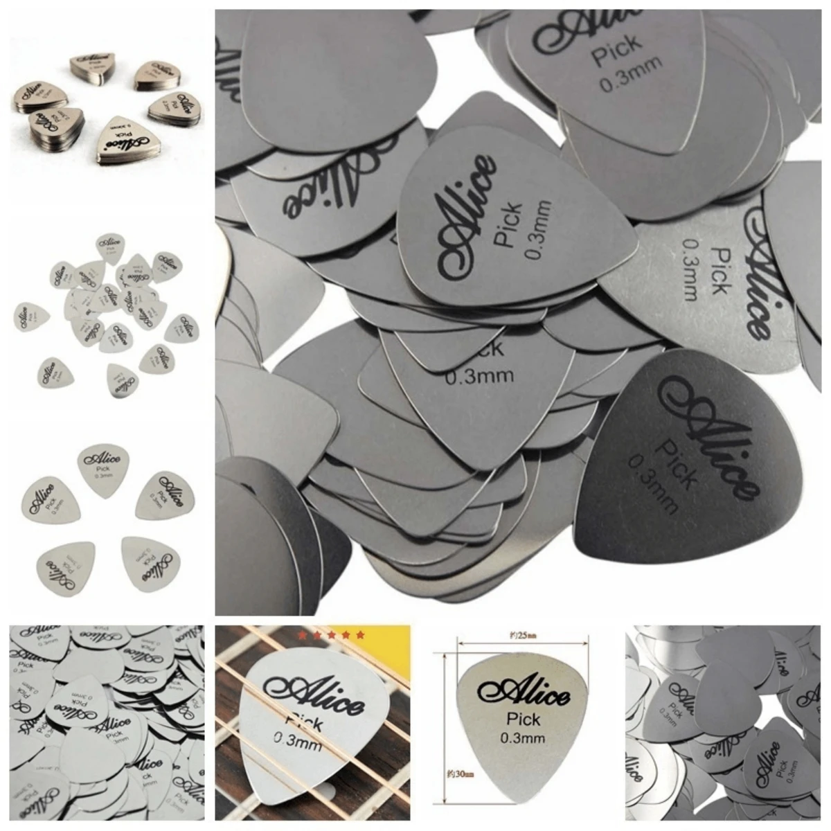 Alice 10Pcs Metal Guitar Pick 0.3mm Thin Durable Silver Color Professional Bass Ukelele Guitar Picks Guitar Amplifier Bass Guita