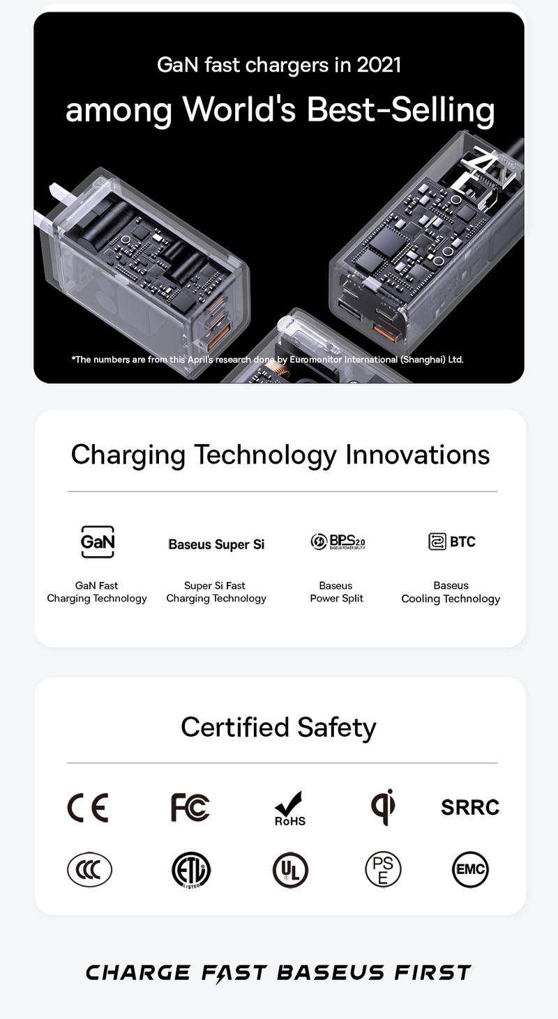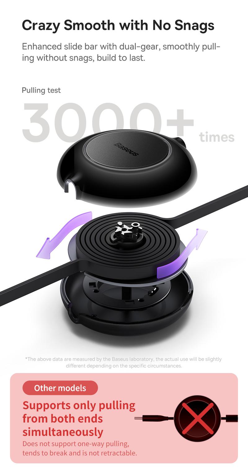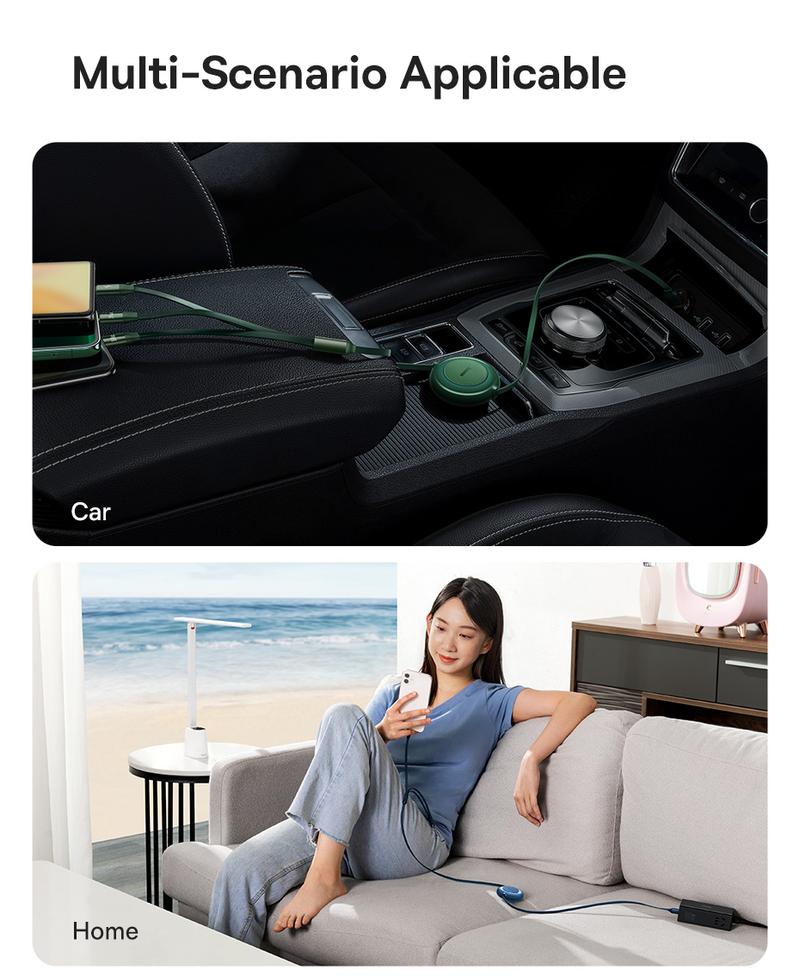 Baseus Retractable 3-In-1 Fast Charging Cable 100W Type-C to Micro USB + Lightning + USB-C