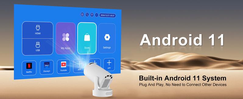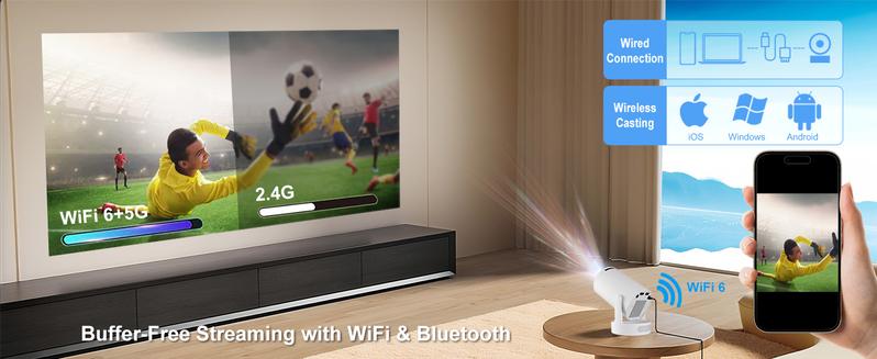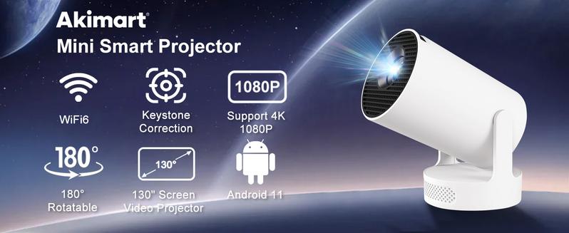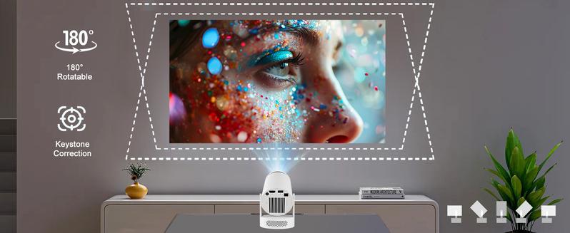 Mini Projector 4K Support with Dual-Band WIFI6 5G Wireless 5.4 Bluetooth Android 11, Soundbase Speaker, Manual Focus, Auto Vertical Keystone 180°Rotatable Portable Proyector for Home Bedroom Outdoor