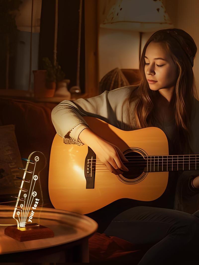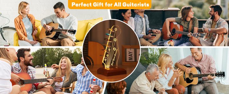 Pookie-Luminous Guitar Pick Stand Acrylic Electric Guitar Headstock Shaped Pick Stand with Wooden Base for Pick Storage and Display Is a Guitar Accessory Gift for Guitarists and Guitarists Acrylic Night Light,Christmas Gift New Year Gift