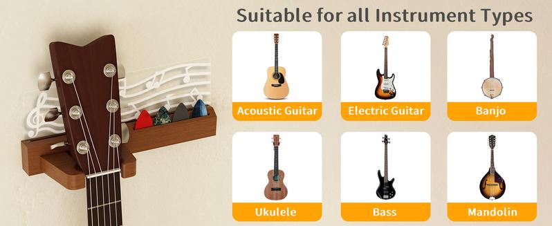 - UNIQUE DESIGN: Add to the basic pick storage, this wooden guitar pick holder shows the pick display to the extreme. When picks are inserted, the picks and the holder together forms a complete electric guitar headstock shape from the stylistic point of view, which is a fashionable and high-class artwork. Especially the unique luminous design makes it outstanding from many other guitar pick case.